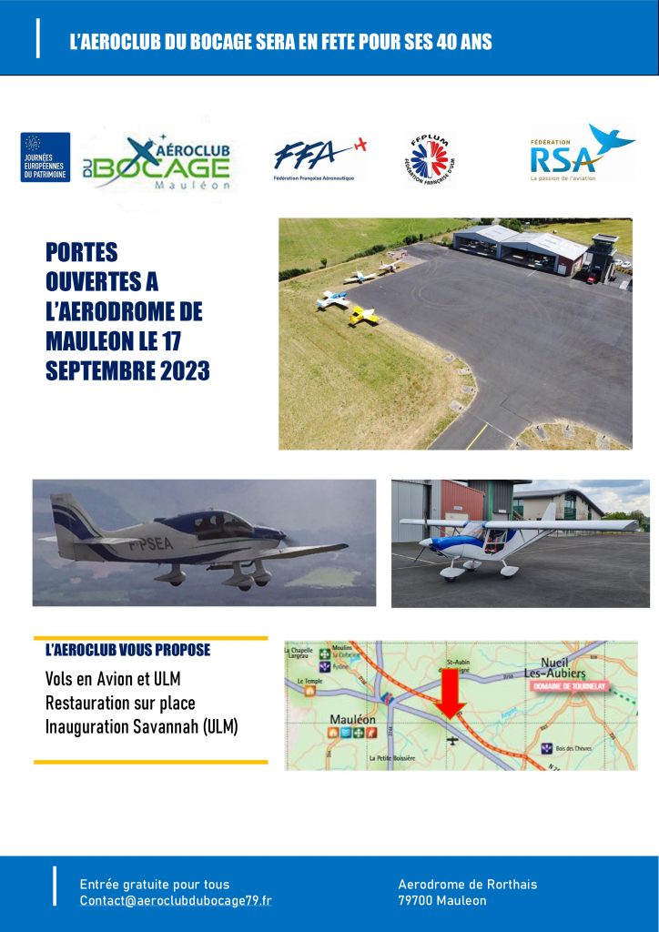 l’Aéroclub du Bocage fête ses 40 ans et vous invite aux portes ouvertes Journée du Patrimoine.